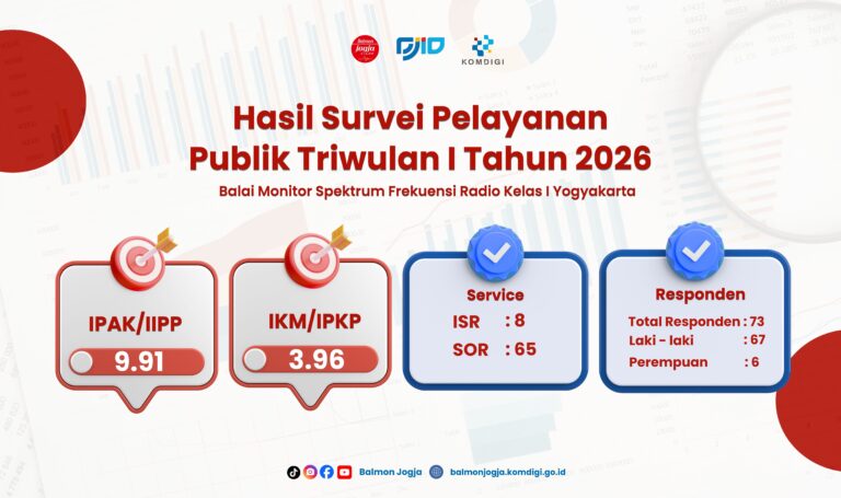 Yogyakarta – Balai Monitor Spektrum Frekuensi Radio Kelas I Yogyakarta baru saja merilis data capaian survei pelayanan publik untuk periode Triwulan I tahun 2026. Laporan ini merupakan bentuk keterbukaan informasi kepada masyarakat mengenai kualitas layanan birokrasi yang dijalankan. Berdasarkan data…